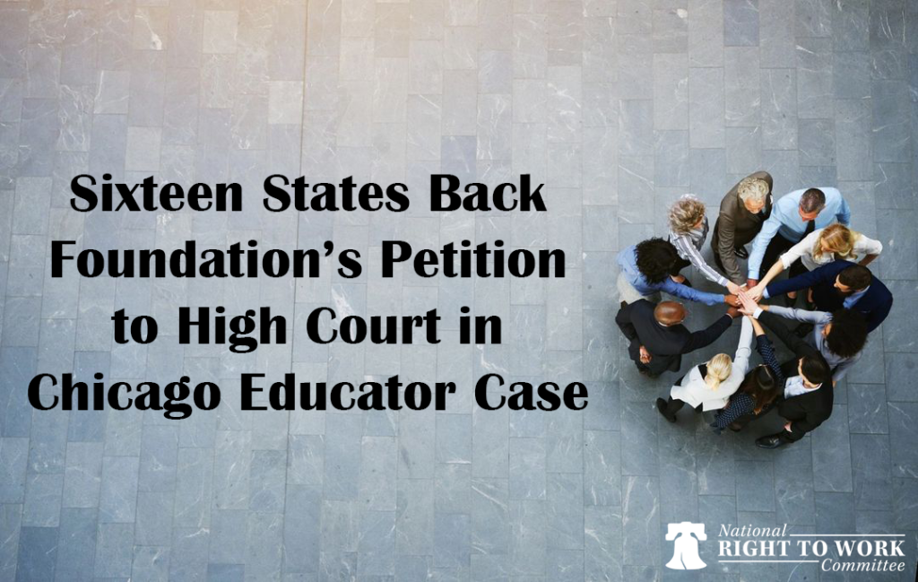 The National Right to Work Legal Defense Foundation’s petition to High Court in a Chicago Educator case has gained support from 16 states.